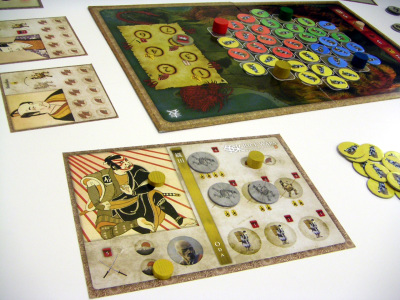 ポーランド発、日本を舞台にした陣取りゲーム。日本の戦国時代は外国人にとっても魅力的なテーマらしく、昨年1年間でもフランスから『戦時』、ドイツから『徳川』と『武士道』、そしてポーランドのこのゲームと4タイトルも発売されている。日本人の目から見ると地名や登場人物の名称がヘンなのはさておき、ゲームとして、どのようにわが国を描いているのか、興味深いところだ。