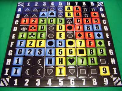 順番に各自、自分の色タイルを1枚置く。タイルは数字・アルファベット・模様がついており、対応する行・列・エリアに置かなければならない。ただし1枚だけ「ブロッカーズ」と書かれたタイルがあり、どこに置いてもよい。