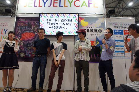 JELLY JELLY CAFEではポッドキャスト「ほらボド!」公開収録。テーマは「創作ゲームから一般流通へ」ということで、自分の同人作品がJELLY JELLY GAMESから一般発売されたデザイナーさんたちが登壇した。詳しくは放送を聴くとして、自分である程度の部数を製作して自分で売るというスタイルは、負担はかなり大きい上に、未調整のままユーザーのもとに届く恐れもあるが、自由な発想で多様なものが生まれる日本独特の良さがあると思う。こうした創作活動を印刷所やカフェが支援し、世界に誇れる作品を生み出す流れができつつある。