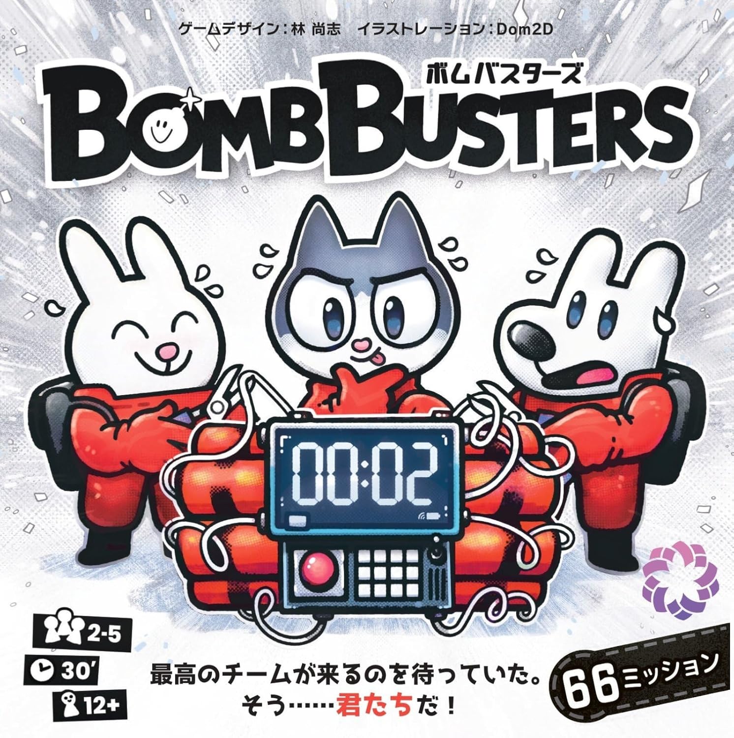 大賞を受賞した『ボムバスターズ』は、林尚志氏(OKAZU brand)がゲームマーケット2020秋に発表した『ボムスカッド』のリメイク。Engamesから先月日本語版が発売された。各プレイヤーの昇順に並んだ数字タイルから自分の持っているものと同じ数字を推測して除去し、協力して爆弾を解除する。クリアしても難易度を上げて次のミッションが待っており、オリジナル版から16増えて66のミッションが入っている。