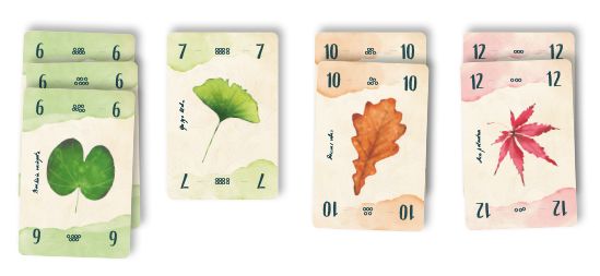 上杉真人氏のデザインでクラニオクリエーション(イタリア)から今春発売された。紅葉していく葉のグラデーションをあしらったゴーアウト系カードゲーム。