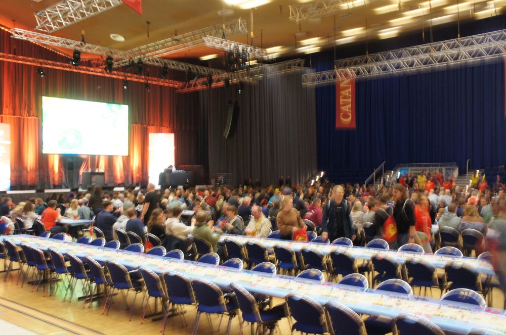 開会式ではスムードというラッパー、『ドーフロマンティック:ボードゲーム』の作者M.パルム、カタンスタジオのB.トイバーがゲストに招かれ、トークを繰り広げた。スムードは娘からカタンを教えてもらったとか、勝つ秘訣を語っていたトイバーが負けていたとか。