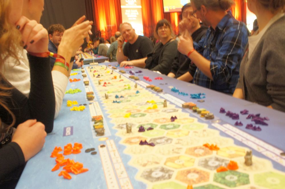 ドイツゲームの代表格である『カタン』はこれまで何度か同時プレイ人数の世界記録更新が行われており、2005年にドイツ・ケムニッツで816人、2013年にアメリカ・インディアナポリスで922人、2017年にオランダ・ロッテルダムで1096人を記録している。