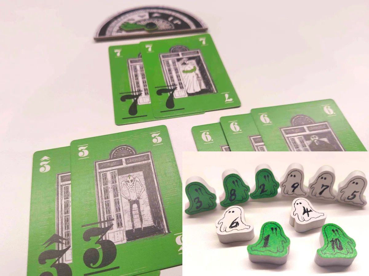 カードを出すかパスした後に、公開札から1種類を手札に加えることができるところがポイントで、手札の強化か、枚数を増やさないかの選択を迫られる。誰かが上がったとき、残った手札の数字はゴーストトークンとなり、次のラウンドへ。その数字が再び残るとゴーストトークンが白から緑になり、緑3つか、緑になった数字がまた残るとそのプレイヤーの敗北でゲームが終了する(他全員の勝利)。