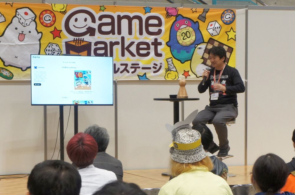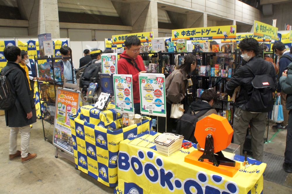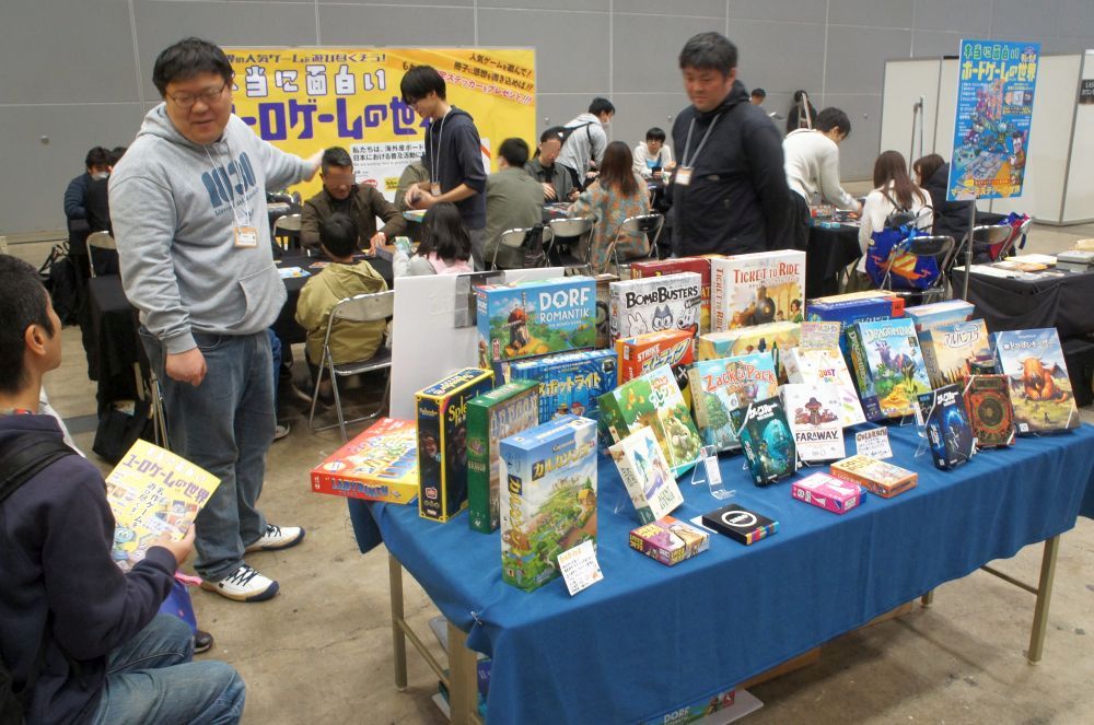 毎回恒例の「本当に面白いユーロゲームの世界」ブースでは、国内10社が提供した定番ボードゲーム(中軽量級)をルール説明付きで遊べる。筆者も日曜日の午後に手伝いに入って4時間、親子連れ、カップル、同性グループなどにいろんなゲームを説明した。最もよく遊ばれたのは『ストライク』だったと思うが、Engamesで『ボムバスターズ』を買い逃して一度遊ぼうというお客さんも結構いた。気に入ったらお隣のイエローサブマリンブースで購入もできるという親切設計。新作リリース数の増加に伴い、ロングセラーの定番を遊ぶ機会が減っている昨今、こういった場で名作に触れてもらいたいと思う。