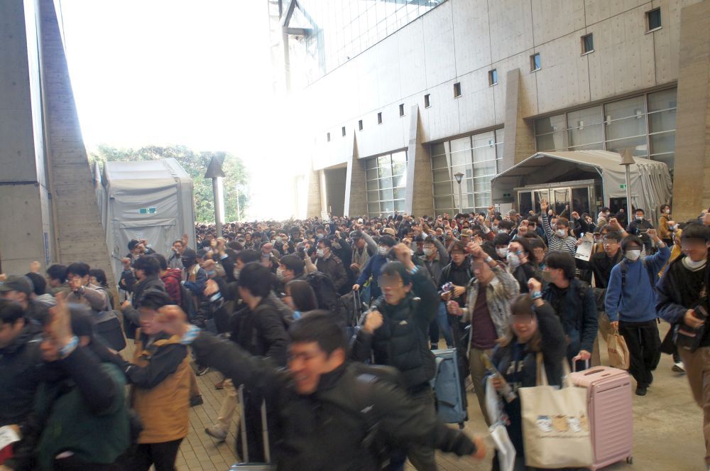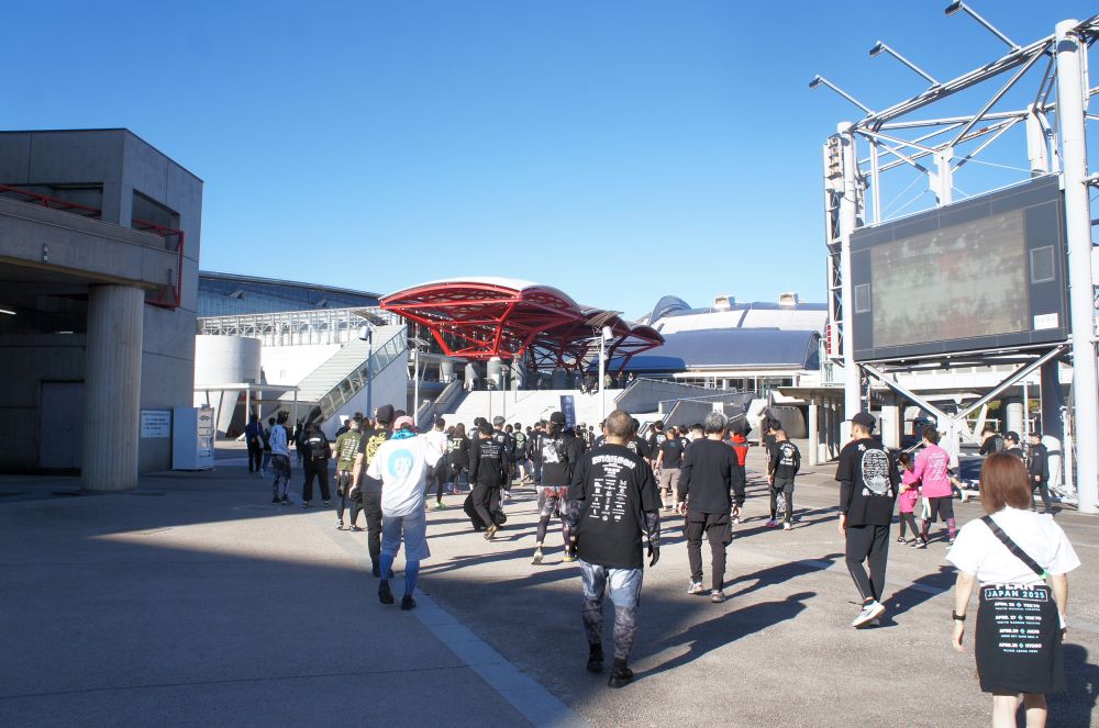 1日目の入場は早期入場チケットを購入した2700人が11時からで、それ以外は12時から。早期入場チケットを買い求めてもなお、ポールポジションを取るために早朝から何時間も並ぶ。今年は天気が良く、気温も温かくてよかった。開場のアナウンスで拍手が起こり、腕のリストバンドを見せながら会場に入っていく。
