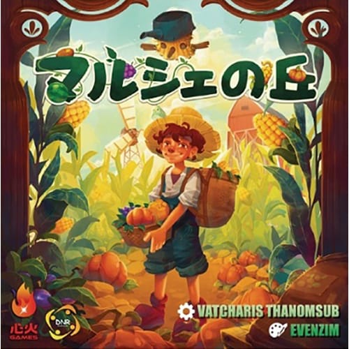 DNRボードゲーム(タイ)から昨年発売された作品。小さな丘の先にある市場で、作物を育て、市場での価格に影響を与える。手番には手札6枚のうち、1枚を市場に出して価格を変動させ、2枚を手元に置いて補充する。
