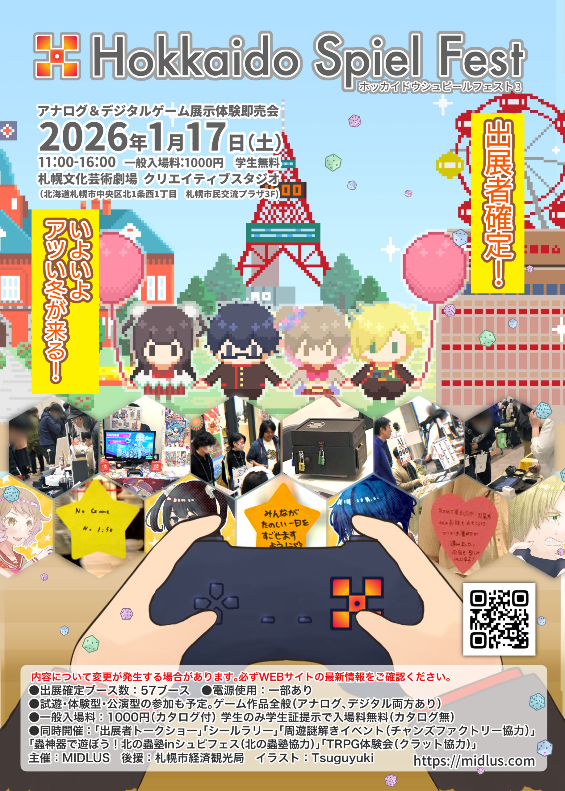 2023年11月に続いて2年2ヶ月ぶり3回目となる自主制作ゲーム展示即売会。前回から2倍近い41団体が出展し、制作者の説明を聞きながら、アナログゲームとデジタルゲームの両方を試遊したり購入したりできる。出展者一覧はこちら。