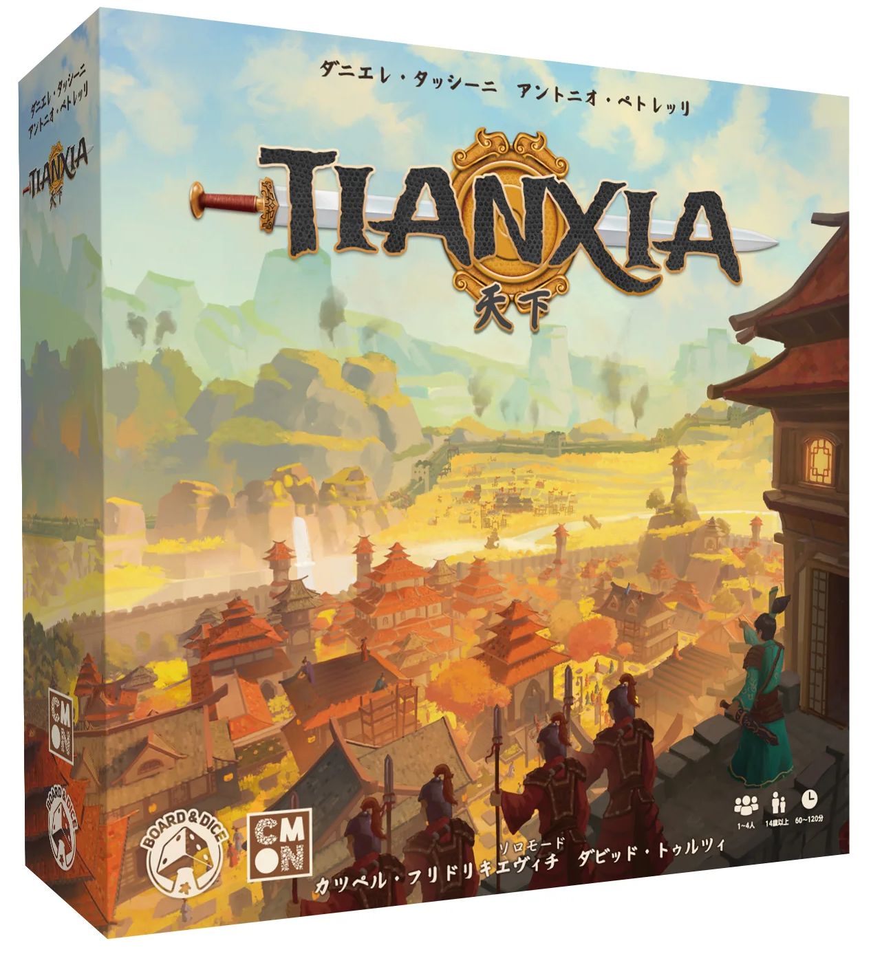 CMONジャパンは2月27日、『天下(Tianxia)』日本語版を発売する。ゲームデザイン:A.ペトレッリ&D.タッシーニ、イラスト:F.アブラヴァネル、1~4人用、14歳以上、60~120分、8800円(税込)。CMONジャパンショップ(下記リンク)の予約特典として、貿易ボーナスのプロモカードが付属する。