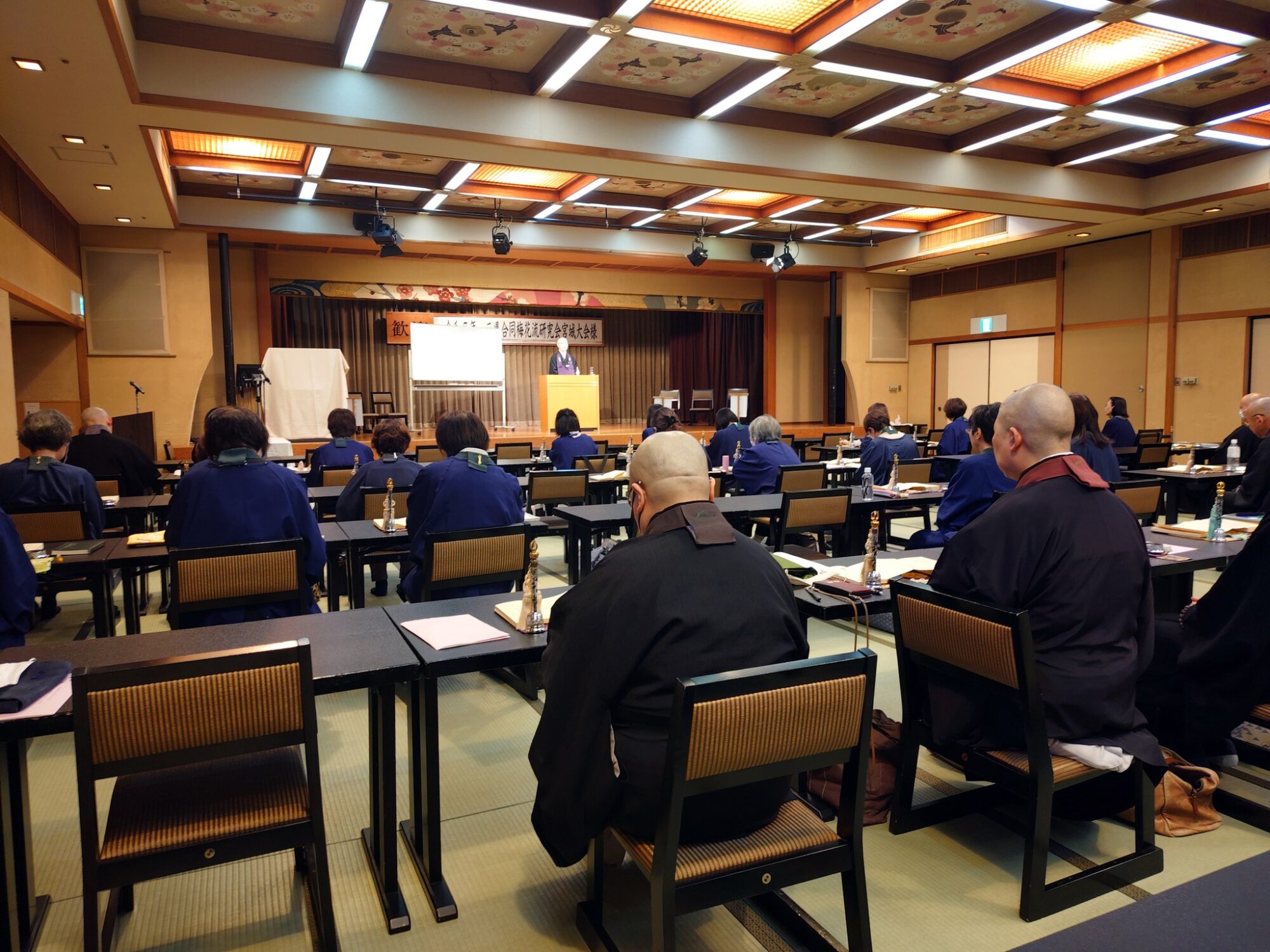 ひとりひとりお唱えして修正箇所を指示して頂く講習で、真心でお唱えすることと、音程や旋揺を正確にお唱えすることの両立はつくづく難しいものだと感じたが、それ以上に、26年前より確実に声が出なくなっていて老いも実感。