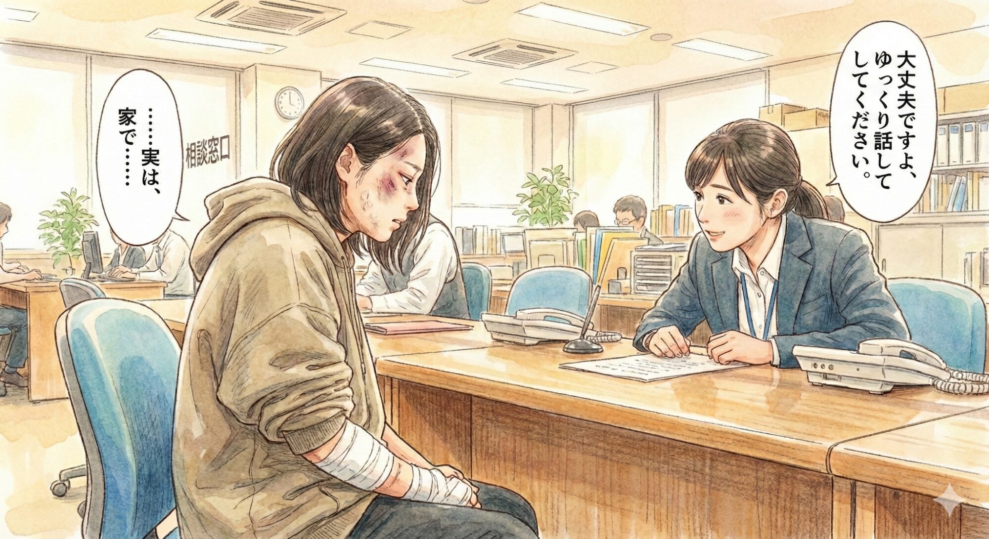- 市町村役場・社会福祉協議会に相談窓口があり、離婚手続や生活面での支援が受けられることを伝える